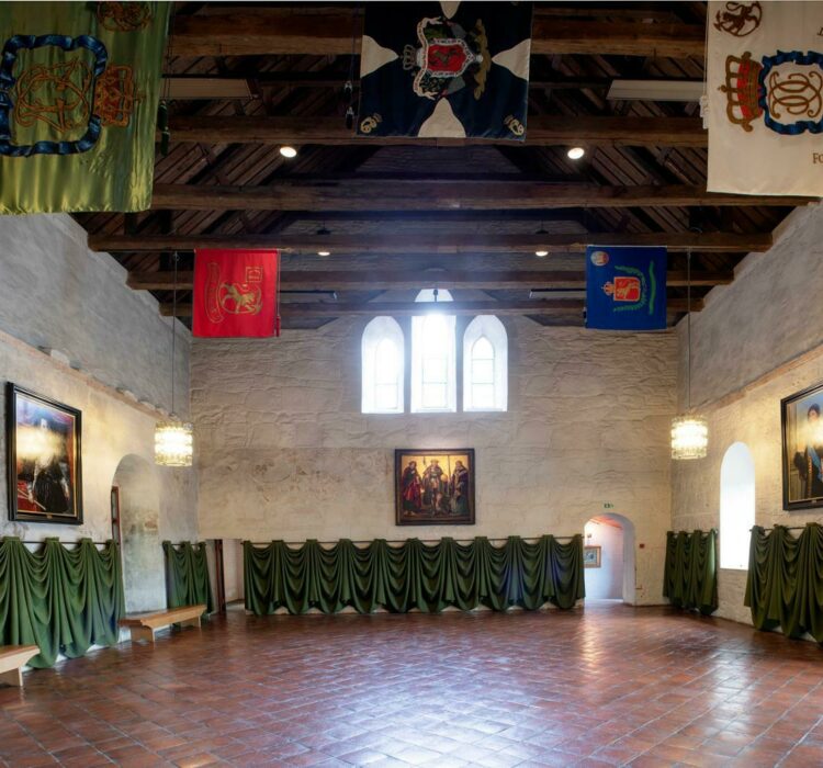 Bli med en av våre dyktige guider på omvisning i Erkebiskopens vakre hallbygningen fra middelalderen. Her hadde både erkebiskoper og danske lensherrer sin residens, før anlegget ble tatt i bruk som militært lager. Vi besøker erkebiskopens hall, og de private rommene som er dekorert med vakre kalkmalerier fra 1600-tallet.