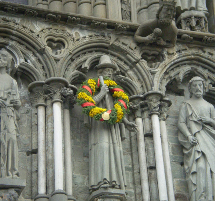 Gudstjenesten starter med bekransning av St Jakob-statuen på Vestfronten kl 17:30. Deretter åpner dørene og vi går inn for å feire messe. Selve messen starter 18:00.