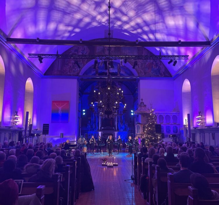 Vi skaper ny musikk og klang, både improvisert og komponert, men tar også med oss noe av det vi kjenner og stadig kommer tilbake til.Vi senker skuldrene, puster med magen, lytter, leker og er til stede sammen i det samme nydelige, generøse rommet i Vår Frue Kirke.