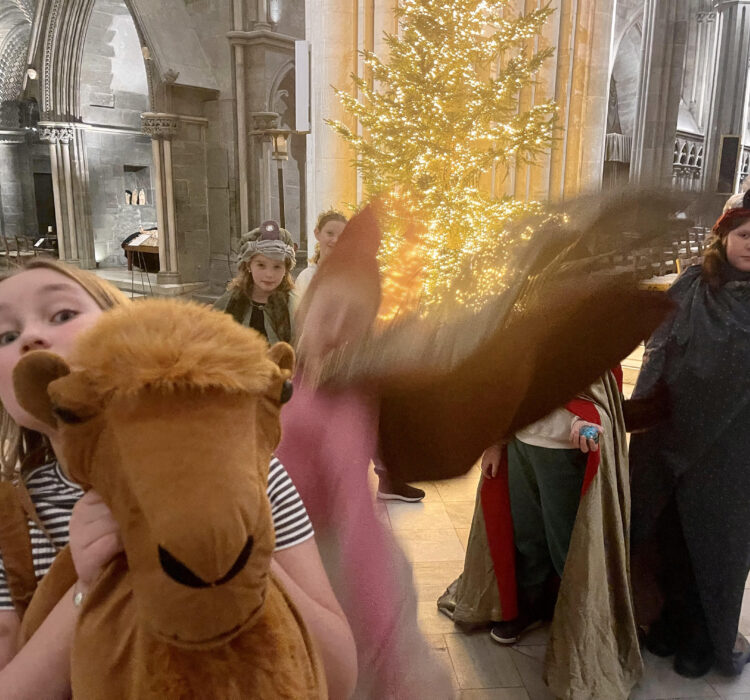 Bli med Edmund, Vilje, Miriam, Frida Tuva og Leah på vandreteater i Nidarosdomen.