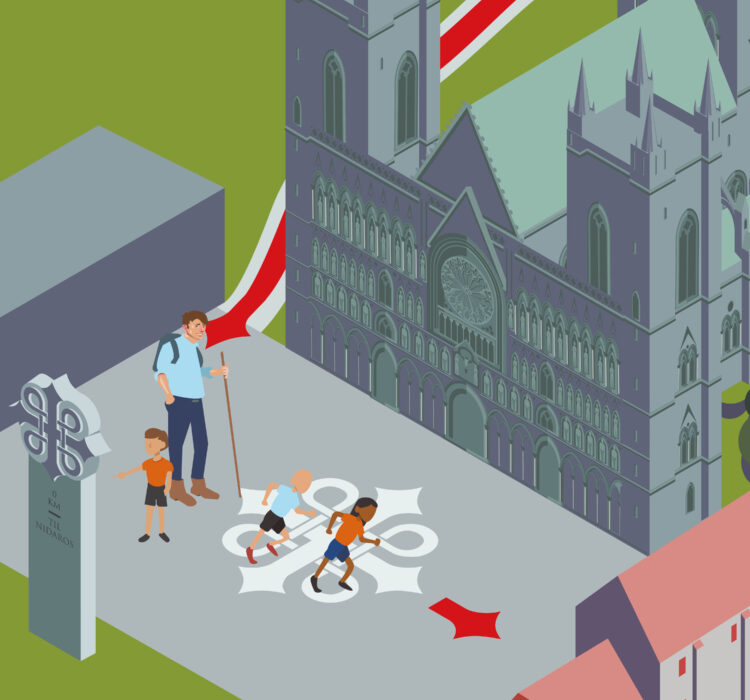 Gå Pilegrimsvandring med hele familien! Følg kartet og let etter Pilegrimsmerker rundt Erkebispegården, Marinen og Nidarosdomen. Langs løypa er det 4 poster hvor det henger stempler som man skal stemple kartet med. Vis frem stemplene i infoboden og få en premie.