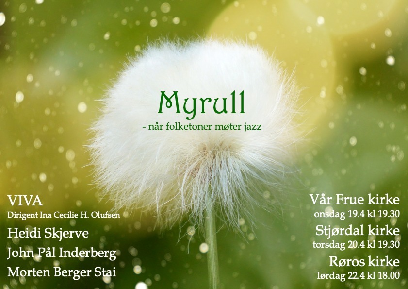 Tittelen «Myrull» har vi hentet fra meldalsdikteren Astrid Krog Halses nydelige dikt, om den lille myrullen som trives i sin duvende ensomhet, og som Heidi har satt melodi til. Heidi har også dypdykket ned i folketoner fra hjembygda Rennebu og tonesatt og arrangert dem for damekor, saksofon og bass. Det blir også andre vakre folketoner og jazzende melodier å høre.