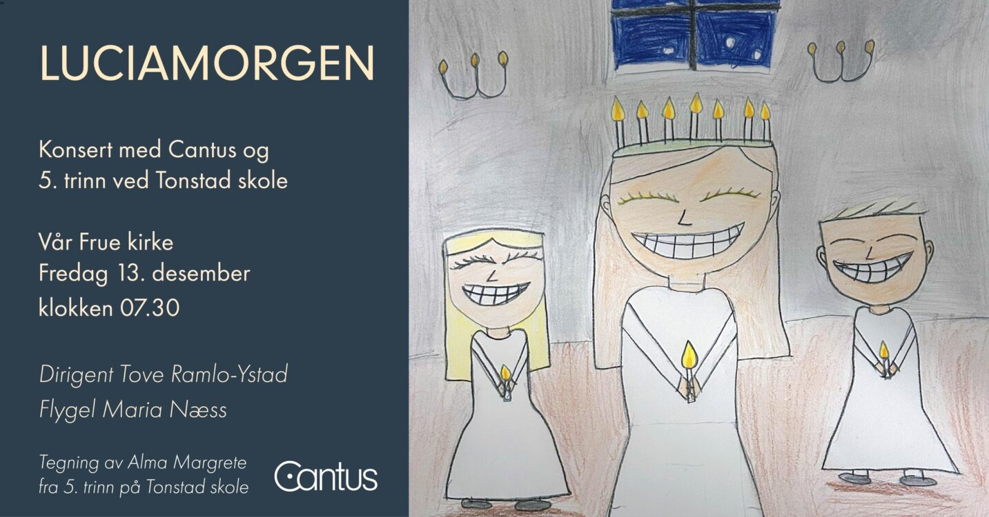 Cantus inviterer deg og dine til en varm og stemningsfull Luciakonsert når de sammen med 5. trinn på Tonstad skole og pianist Maria Næss fyller Vår Frue kirke med glødende lys, og vakker sang.