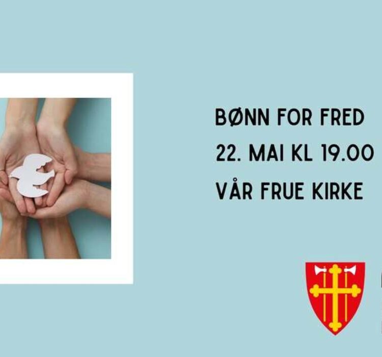 Torsdag 22.mai kl.19 samles vi til bønn for fred. Vi inviterer alle som vil. Vi vil lytte til musikk og fredsbønner. Tenne lys. Løfte vår urolige verden fram for Gud.