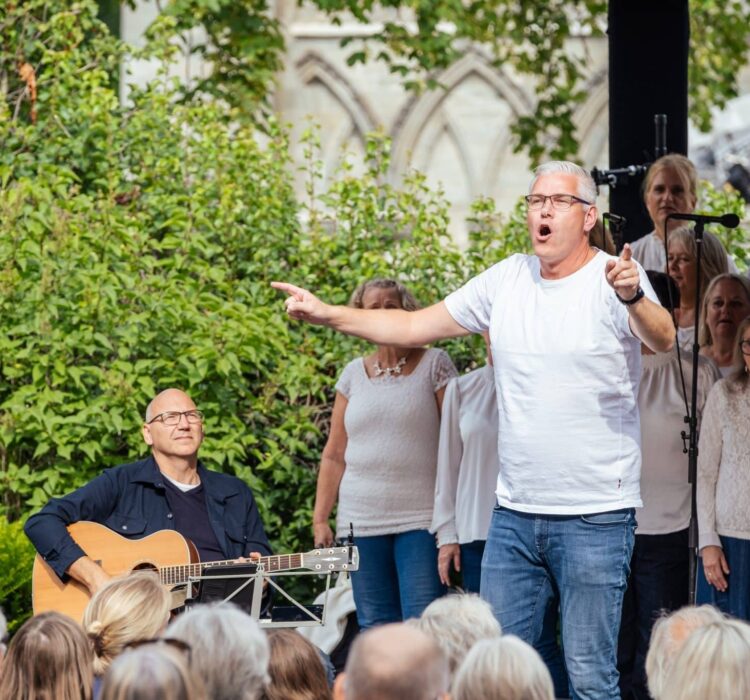 Leif Ingvald Skaug er en norsk musiker, kordirigent og inspirator. Han er særlig kjent for sitt arbeid med gospelmusikk og fellessang, og har vært en sentral skikkelse i å bringe gospel til et bredt publikum i Norge. I fjor ble det «publikumsrekord» i Kirkehagen da han tok oss med i allsangen. I år som tidligere år har han med seg Svein Skulstad og sangere som inviterer til allsang med både viser, jazz og salmer.