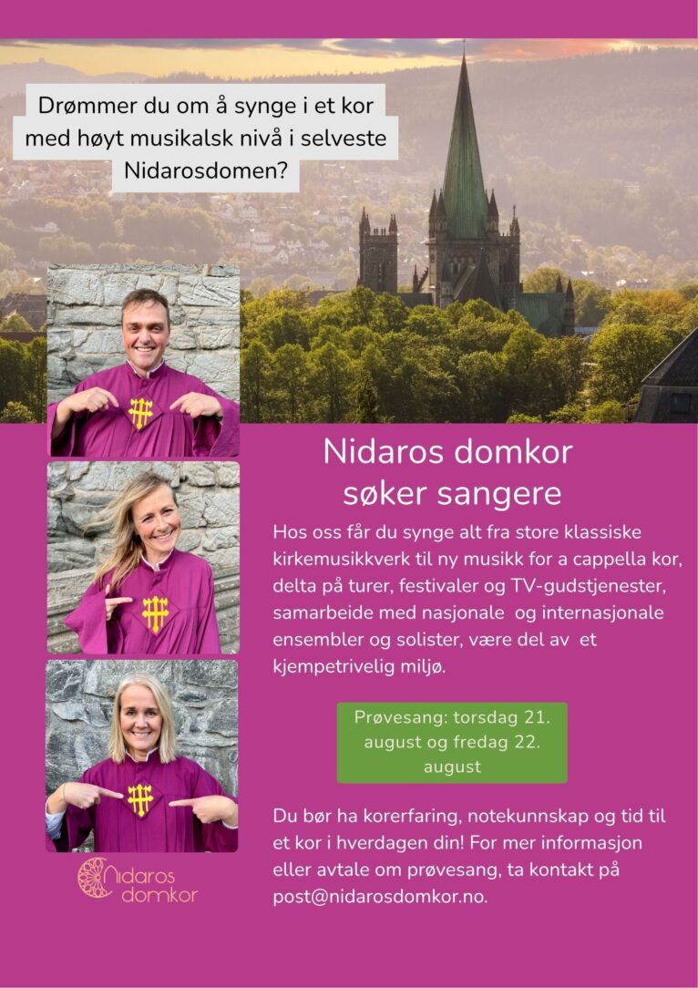 Alle er varmt velkommen til høymesse i Nidarosdomen. I høymessen kan vi søke kraft og inspirasjon for oss selv, samtidig som vi bærer hele verden med oss i bønn. Du kan alltid ta i mot nattverd på høymessene. Ved døpefonten står barnealteret. Vær gjerne med barna frem hit under høymessen. Her står også et tegnebord.