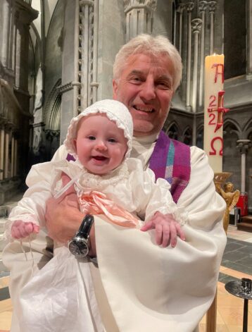 Høymessen ledes av sokneprest Torstein Amundsen. Her fra en dåp i 2024. Kantor Øyvind Kåre Pettersen på orgel.