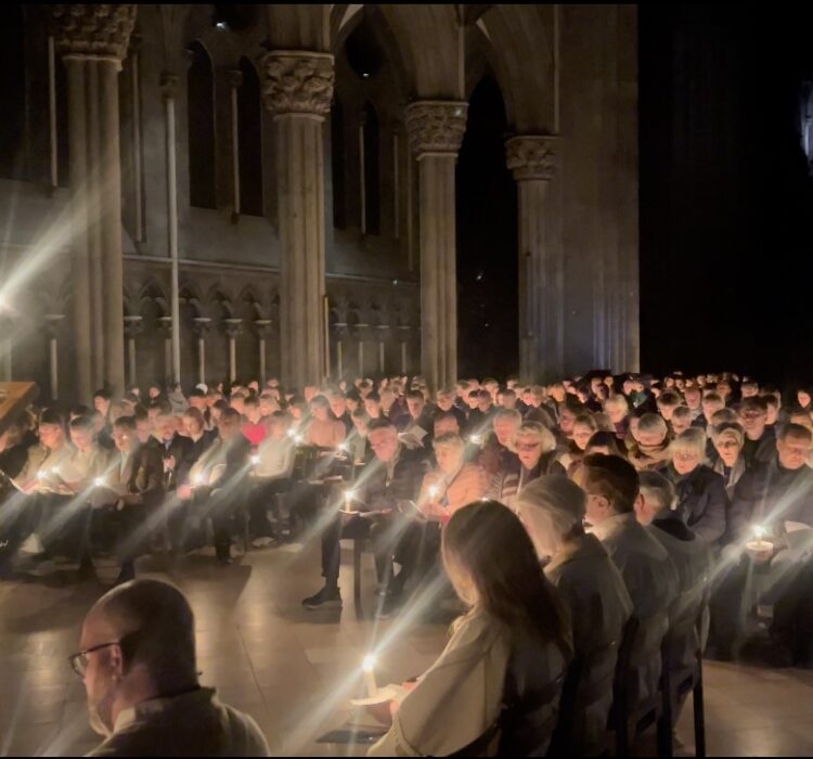 I påskenattsmessen er kirken fra begynnelsen mørklagt. Vi får alle utdelt hvert vårt stearinlys når vi kommer. Dette tennes når påskelyset bringes inn under åpningsdelen av messen. Dette symboliserer Jesu oppstandelse, vi går fra mørke til lys. Så blir kirken fullt opplyst. Da slukkes stearinlysene. Under utgangen tenner vi igjen stearinlysene og bærer dem med ut på Vestfrontplassen. Messen ledes av skneprest Andreas Grandy-Teig, domkantor Brita Sjöberg på orgel og Trondheim Vokalensemble med dirigent Oddgeir Kjetilstad.