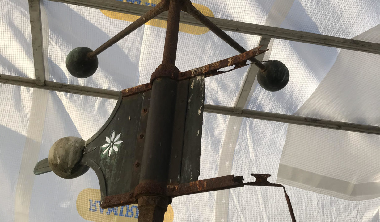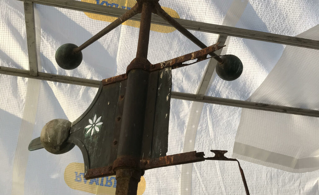 Lensvik kirke er bygget i 1863 og har ett hovedspir og to mindre spirtopper. Vindfløyen, som var festet på hovedspiret, var knekt i to og den ene biten hadde falt ned på bakken. Smedenes oppdrag var i utgangspunktet å feste de to bitene sammen eller eventuelt å lage en ny vindfløy.