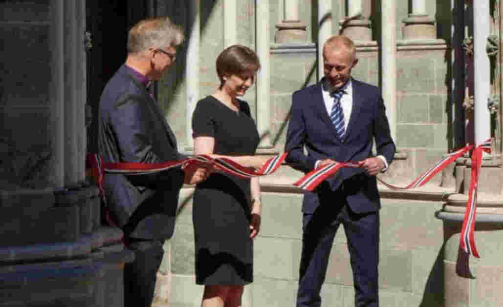 Den 24. juni 2022 var det endelig klart for offisiell gjenåpning av Kongeinngangen. En rekke prominente gjester var invitert, blant annet Barne- og familieminister Kjersti Toppe, preses Olav Fyske Tveit og biskop Herborg Finnset. Hele byens befolkning var invitert til å feire sammen med oss denne dagen. Vi bød på kaffe og kake, taler og åpningskonsert inne i kirka.