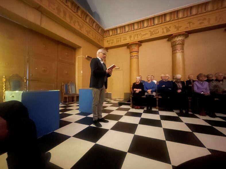 I den helt spesielle Stjernesalen samles pensjonistene. Her leser Torstein Juleevangeliget og ber Fader Vår. Mørket senker seg og stjernehimmelen åpenbarer seg over oss. Alle reiser seg og Torstein leder sangen.