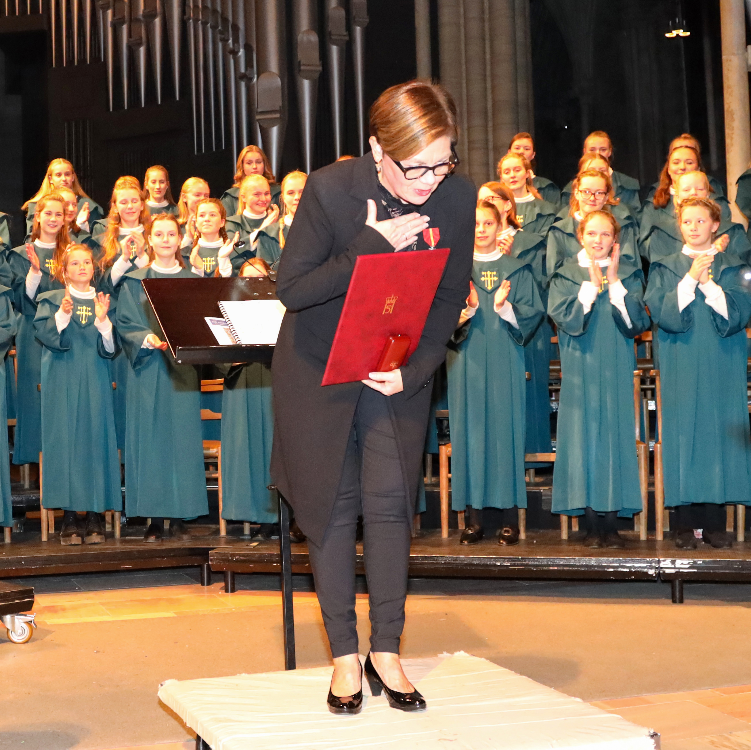 Den desidert største overraskelse for dirigenten selv, var Kongens Fortjenstmedalje. Hun ble rett og slett overveldet, stolt glad, takknemlig og ydmyk over at de hadde sett henne