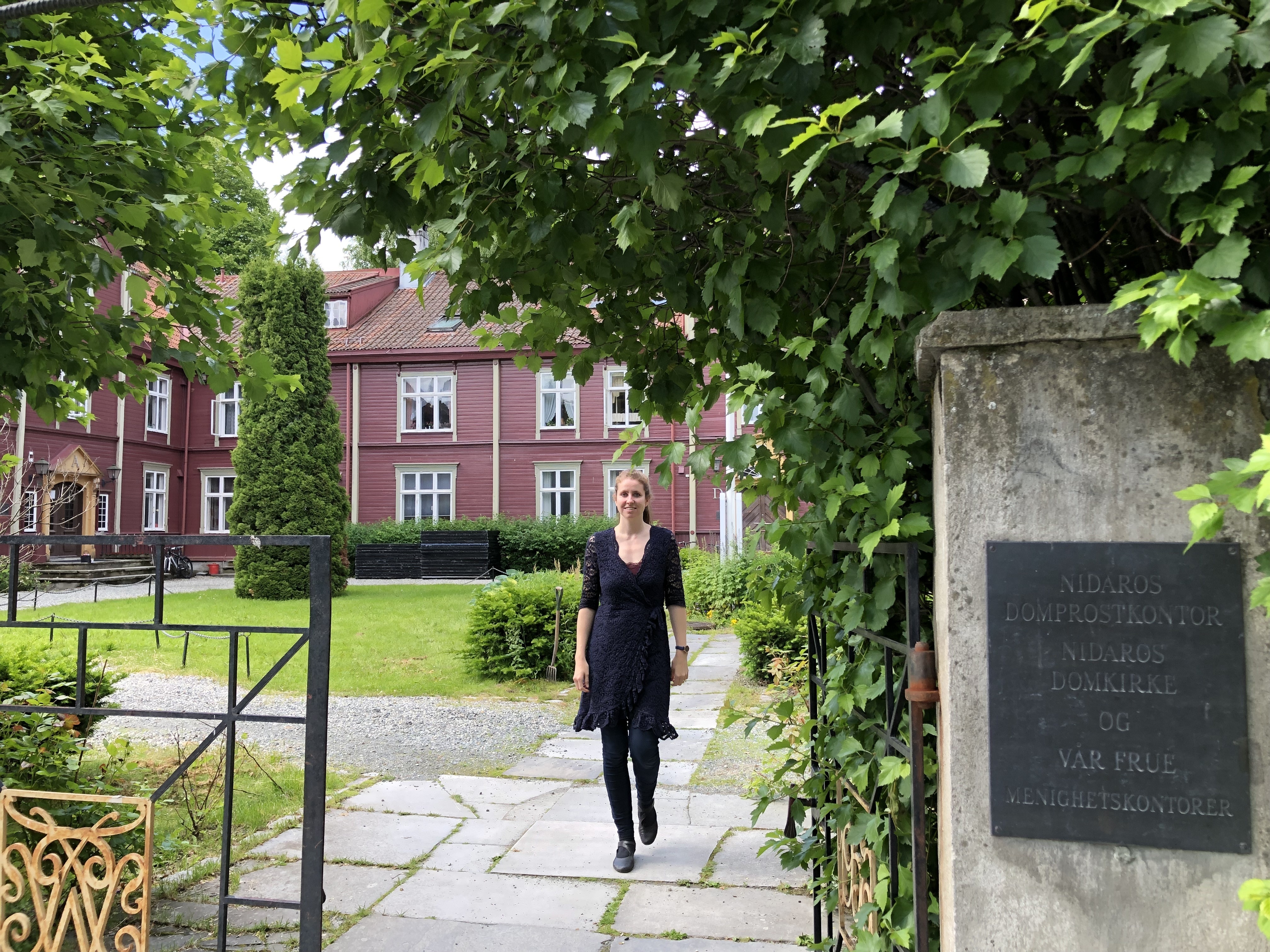 Hun arbeider som diakoniarbeider i Nidaros domkirkes sokn. I år har hun gledet seg spesielt til Olavsfestdagene, og samtaletilbudet i Kirkehagen.