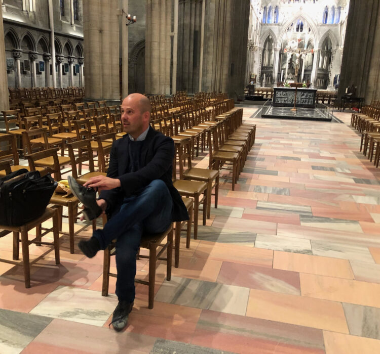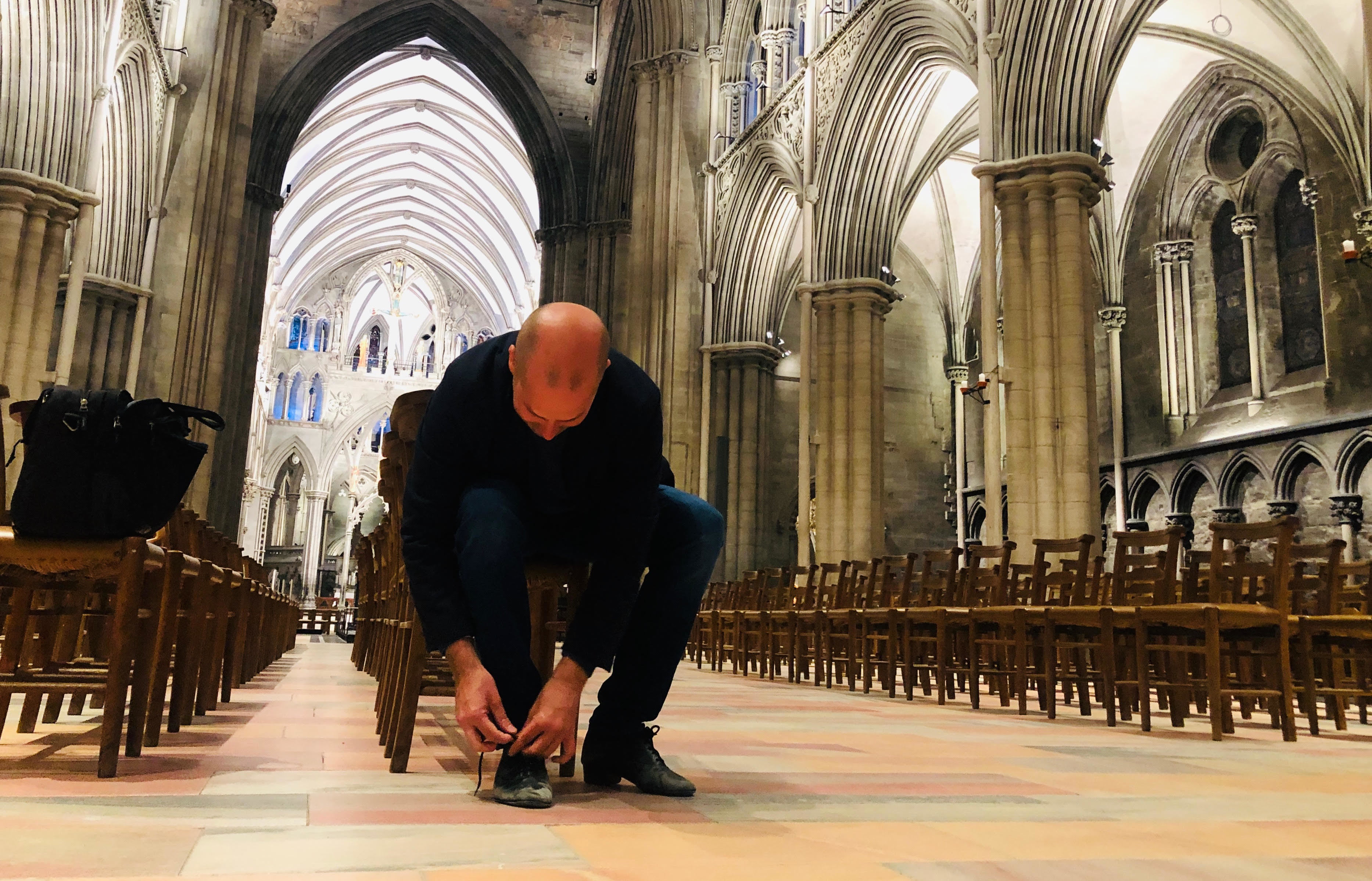 Her snører Espen orgelskoene, klar for sin første konsert i Nidarosdomen
