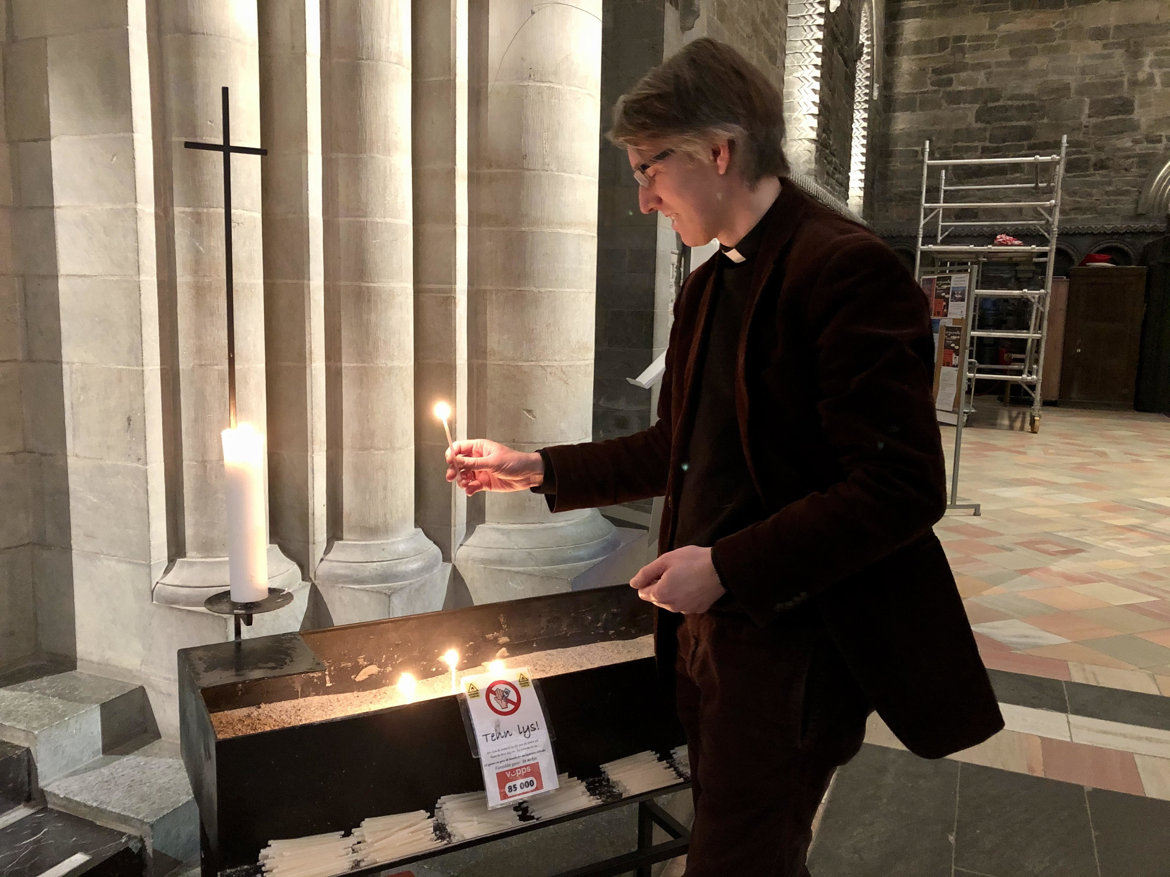 – De som kommer hit til Nidarosdomen er en del av et åpent fellesskap, men et enda åpnere fellesskap med alle de som tenner et digitalt lys hjemmefra. Vi er heldige i Trøndelag som får lov til å holde kirka åpen. Her kan vi samle alle våre bønner, våre bekymringer og vårt håp, smiler Andreas Grandy-Teig.