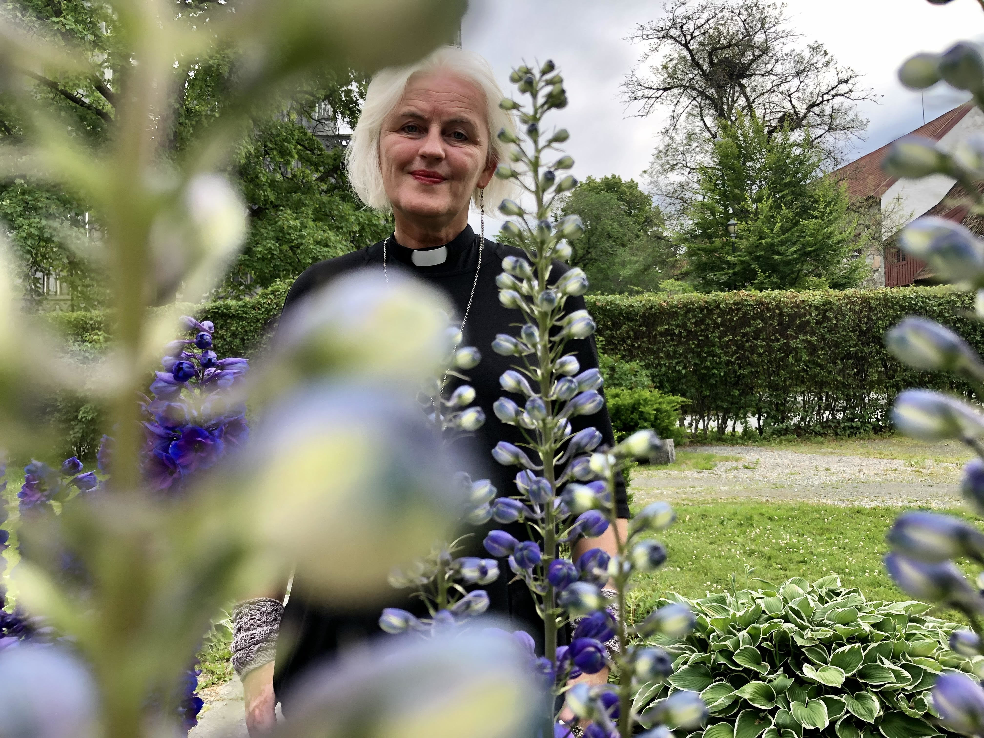 – Jeg håper at Kirkehagen blir et godt sted å være gjennom Olavsfest, både for de ledede samtalene og de uformelle rundt kaffekoppen, sier kapellan Marie Farstad. Foruten samtaler i hagen, ser hun frem til Familiemesse og Messe for heling og trøst.