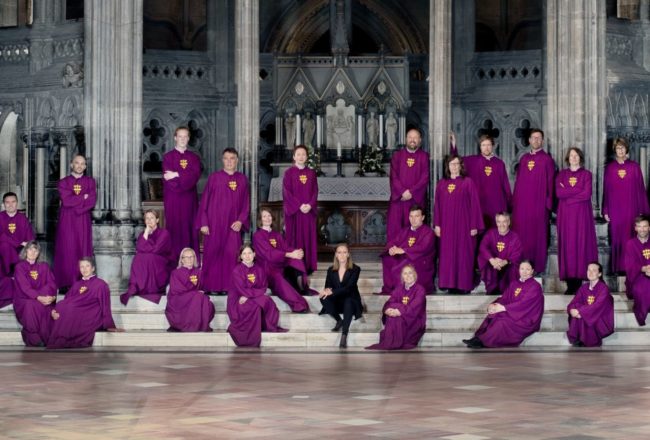 Nidaros domkor øver til konserten «Lytt til stillheten» med komponist Eva Holm Foosnes.