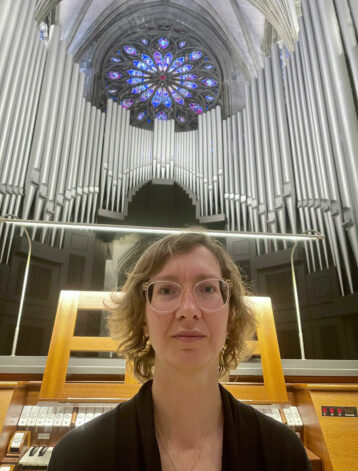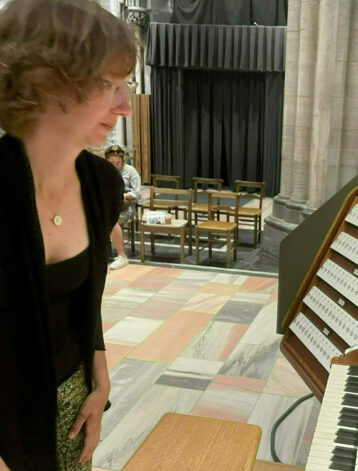 Når hun spiller til gudstjeneste, der hennes oppgave er å spille til salmer og liturgisk musikk, har hun også dette i bakhodet.