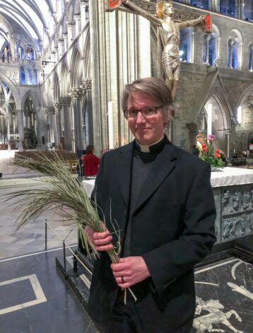 I hendene holder soknepresten tørkede palmegreiner som han snart skal forvandle til aske.