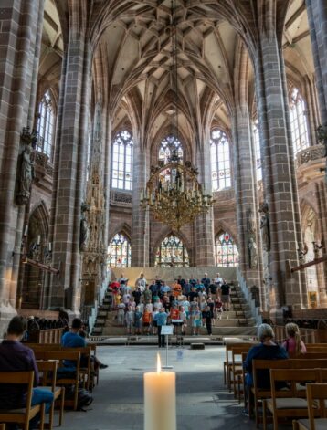 Guttekoret øver før konsert i St. Lorenz kirke i Nürnberg. (Foto: Nidarosdomens guttekor)
