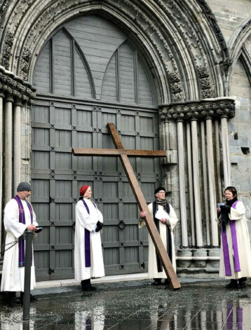 Korsvandringen langfredag avsluttes ved Nidarosdomen. Bildet er fra et tidligere år. (Foto: Karina Lein)