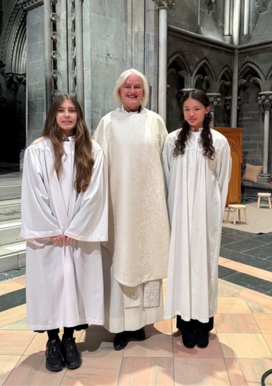 Sammen med prestene og koret gikk Marta og Katja i prosesjon inn i kirken.
