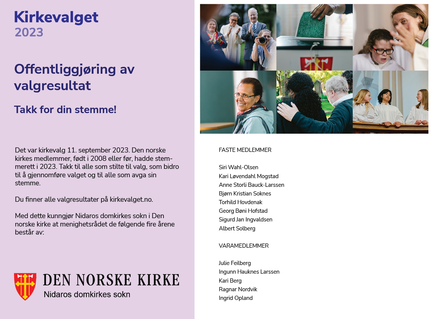 Stemmene fra Kirkevalget er talt opp. Nå er det klart hvem som utgjør menighetsrådet for Nidaros domkirkes sokn i perioden 2023-2027.