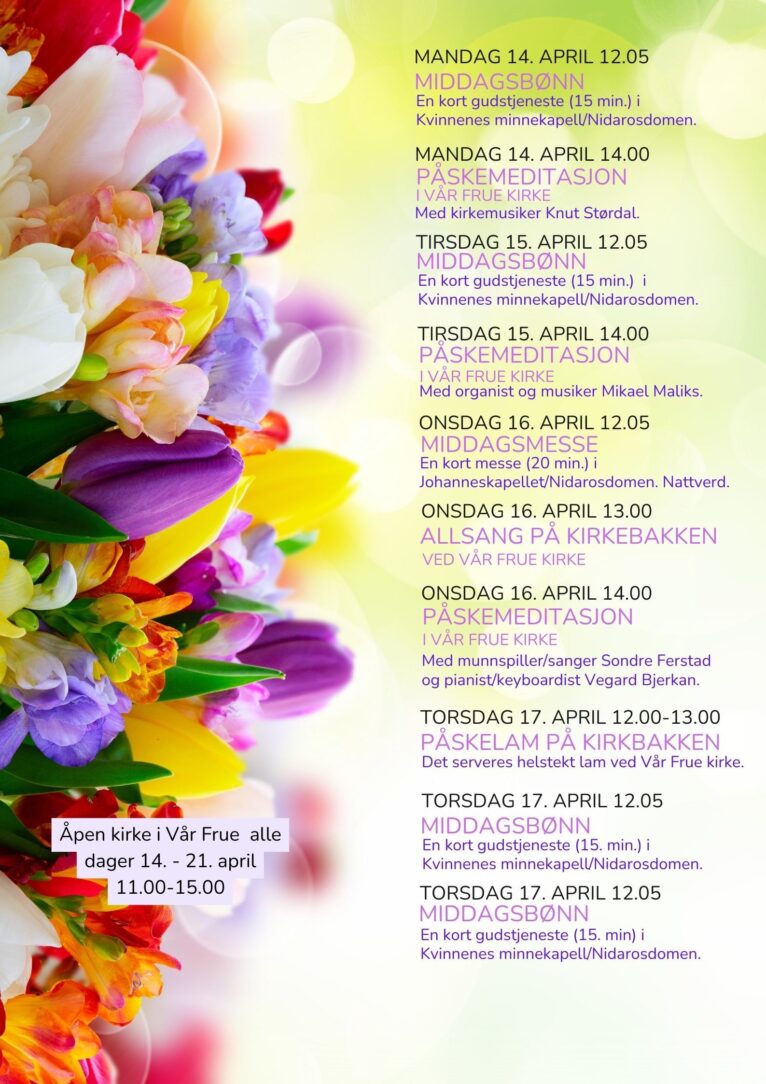 Påsken 2025 - gudstjenester og konserter Her en oversikt over arrangementer påsken 2025. Varmt velkommen.