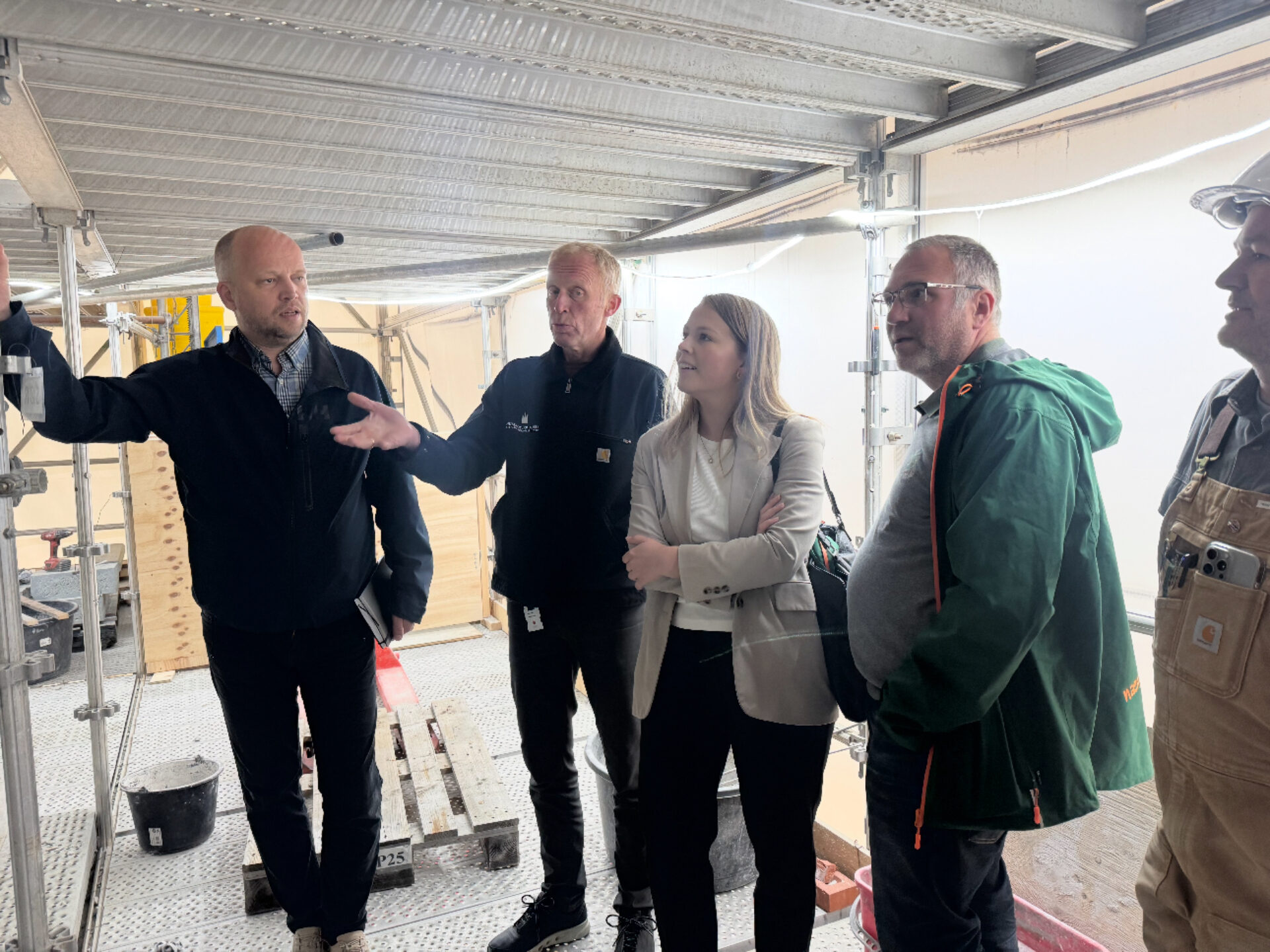 Bygghytta ved Nidarosdomen fikk tirsdag besøk av en delegasjon fra Senterpartiet med partileder Trygve Slagsvold Vedum i spissen.