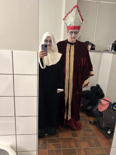 Det første oppdraget praksiselevene fikk var det å være med på var NDR’s planlegning av spøkelsesslottet i Erkebispegården. Dette arrangementet er en tradisjon som startet først i 2023 på Halloween. Alfred og Sunniva fikk være med å planlegge og dekorere til dette arrangementet. De var også med som spøkelser der de jobbet sammen med 19 andre ansatte som jobber innenfor NDR. Alle gikk litt ut av sin egen rolle på jobb og ble med på arrangeringen av spøkelsesslottet.