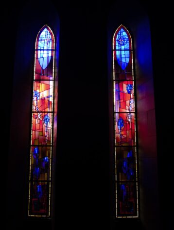 Milleniumskapellet har vakre blyglassvinduer av Oddmund Kristiansen. Han har utført glassmalerier i Mikaelskapellet (1954), Mariakapellet (I979), Olavskapellet (1980) og i Vestfronttårnet (ca. I985).