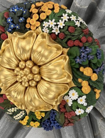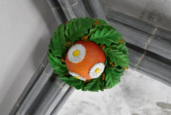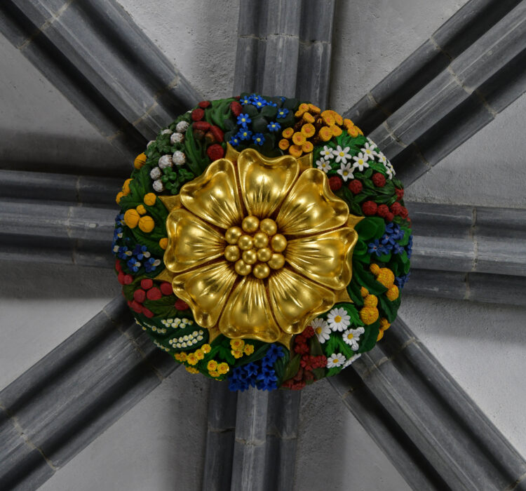 I hvelvet i Millenniumskapellet finnes dekorerte steiner, som er malt i sterke farger. Disse er et resultat av en konkurranse i Bygghytta. Sluttsteinen i midten av hvelvet forestiller Trondheimsrosen. Den er omkranset av markblomster fra de 14 kommunene i tidligere Sør-Trøndelag.