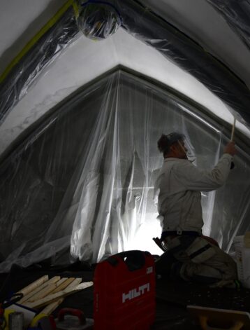 I Nidarosdomens høyder finnes det små, skjulte rom som publikum ikke har tilgang til. Men selv disse skjulte rommene må restaureres og vedlikeholdes. Håndverkerne i Bygghytta ved Nidarosdomen er akkurat i mål med restaureringen av Millenniumskapellet, som ligger i det nordre vestfronttårnet.