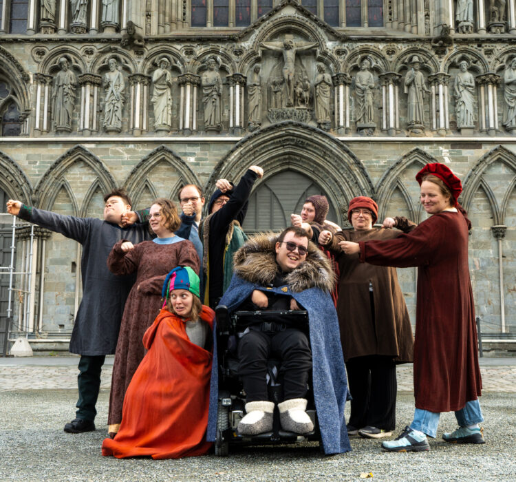 Sjiraffen kultursenter er en selvstendig kulturorganisasjon, som arrangerer kultur- og fritidstilbud for barn, ungdom og voksne med psykiske og fysiske funksjonshemninger. I høst har de hatt middelalderen som tema. I den forbindelse har 11 av utøverne Forestillingen har fått navnet «Reise i Nidaros» og handler om livet i Nidaros i middelalderen, et hardt liv med strenge regler, mye fattigdom og tidenes største pandemi – svartedauden. fra kultursenteret laget et vandreteater, som skal fremføres i Nidarosdomen til helga.