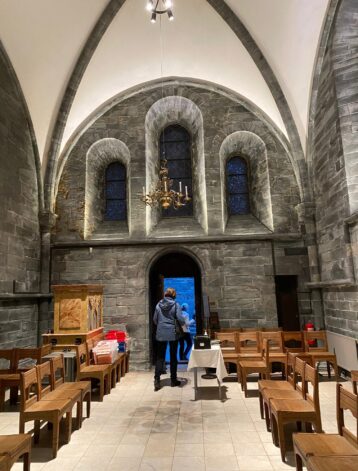 – Hvis jeg har besøk i helgene så blir de dratt med ned til Kapittelhuset og vesper. Det varer jo heller ikke så lenge, og det passer meg ypperlig. Jeg har også hatt med barnebarna på sju og 10 år. Litt sånn mark i begynnelsen, men så la de seg ned på på gulvet med beina i været og sang med. Da det var ferdig sa de «dette var fint mormor», smiler Hilde-Anette.